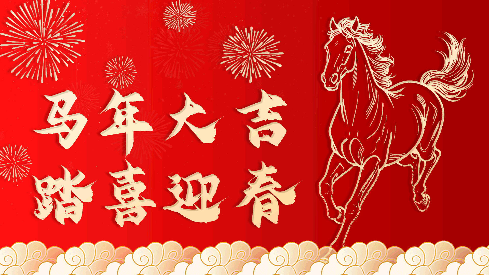 橙黄喜庆春节舞狮中国风国潮马年海报1