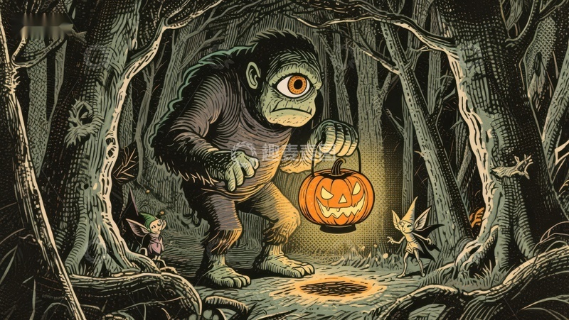 / 森林中的怪物手持南瓜灯