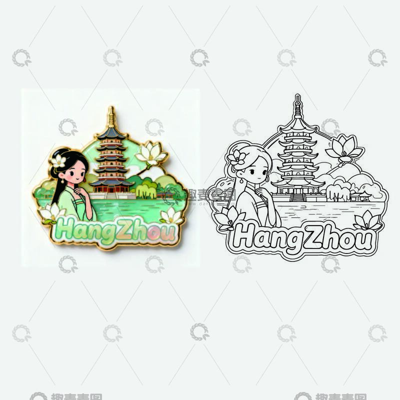 / 杭州风景卡通纪念徽章设计素材