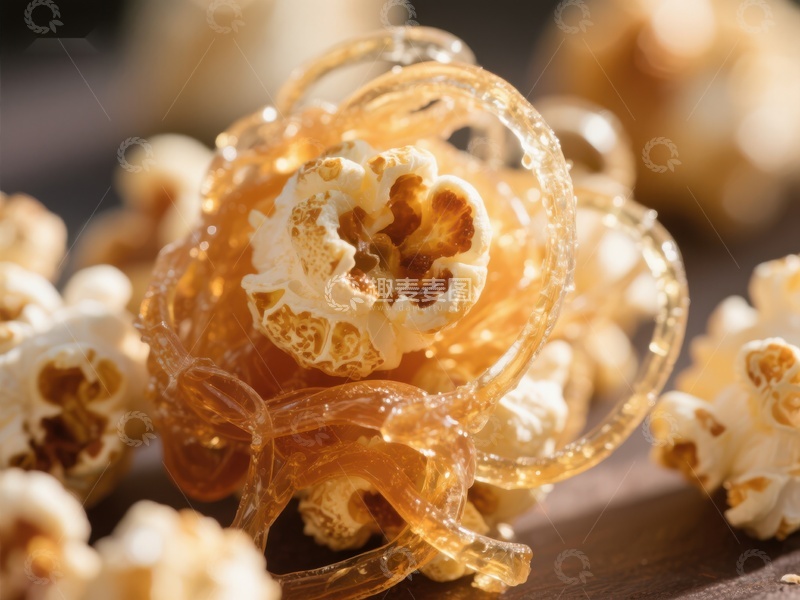 焦糖包裹的爆米花特写