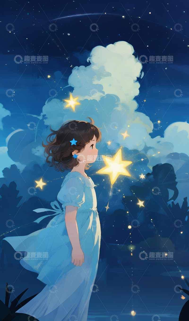 女孩和星星插画2