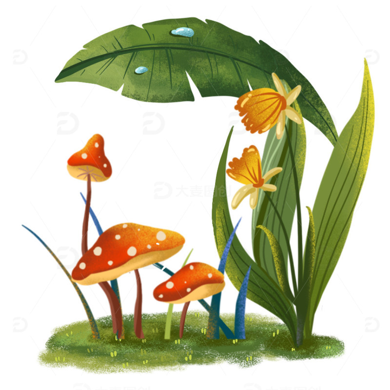 / 卡通风春季初春立春花草草地鲜花蘑菇元素