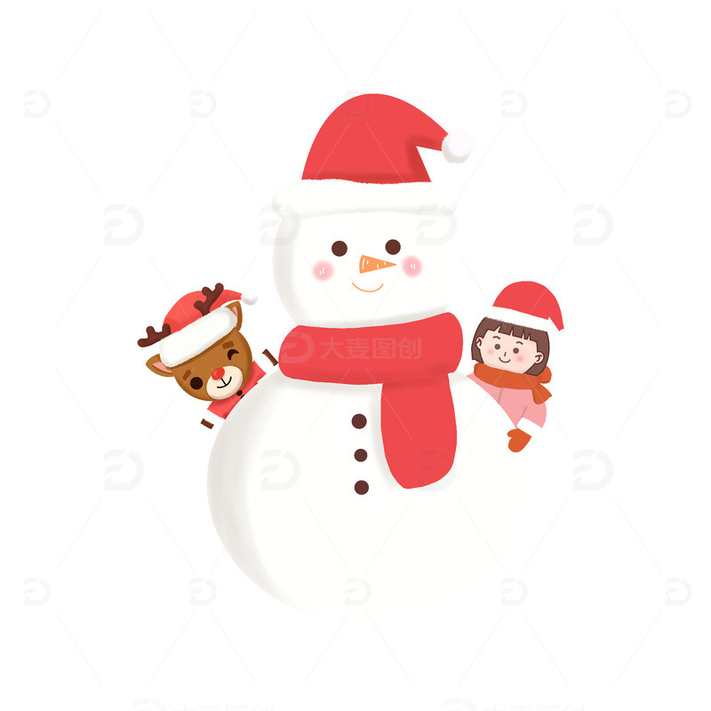 / 白色圣诞平安夜雪人麋鹿小女孩雪人手绘元素