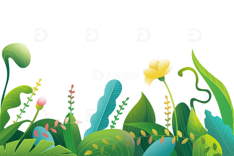/ 简约手绘小清新绿色春天草丛元素