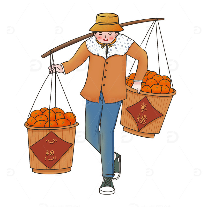 / 秋收秋季橙子农民挑担子赣南脐橙摘果子果农