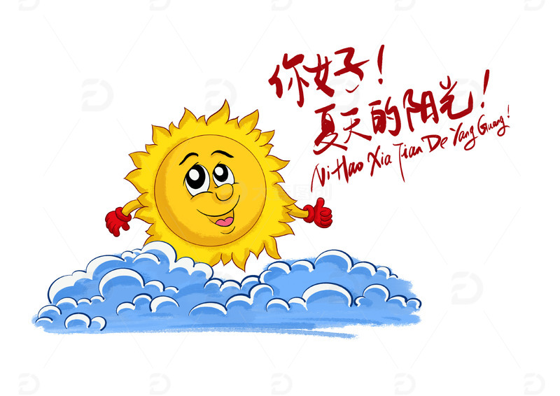夏天太阳白云阳光卡通手绘艺术字