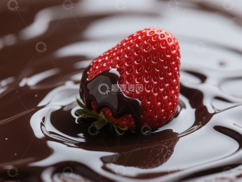 / 巧克力中的草莓特写