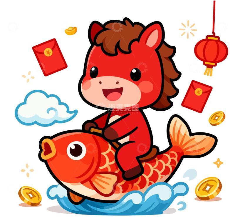 春节元旦卡通马年庆祝插画2
