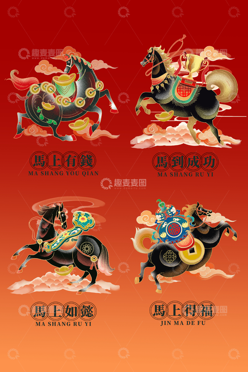/ 中国风吉祥马插画设计素材