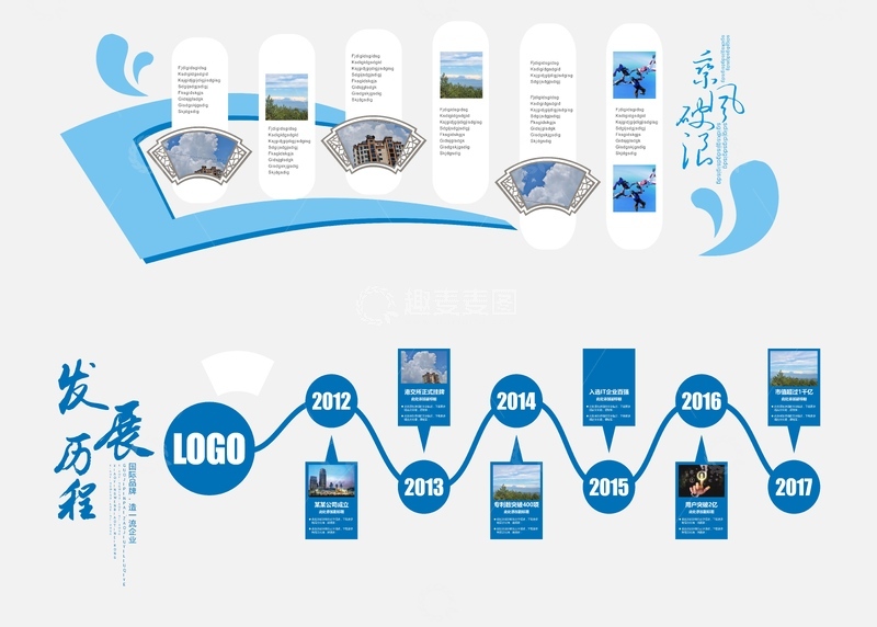 / 蓝色文化墙,蓝色系展板,发展历程