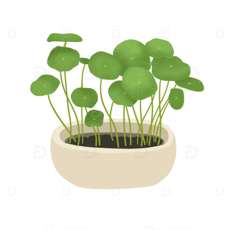 手绘铜钱草盆栽
