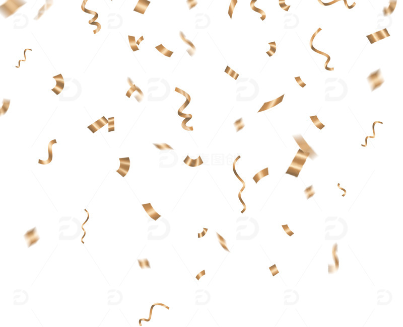 手绘电商促销金色质感礼花彩带漂浮装饰元素