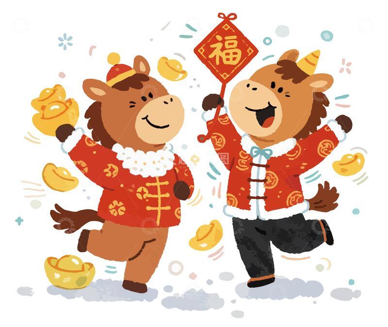 春节元旦卡通马年庆祝插画7