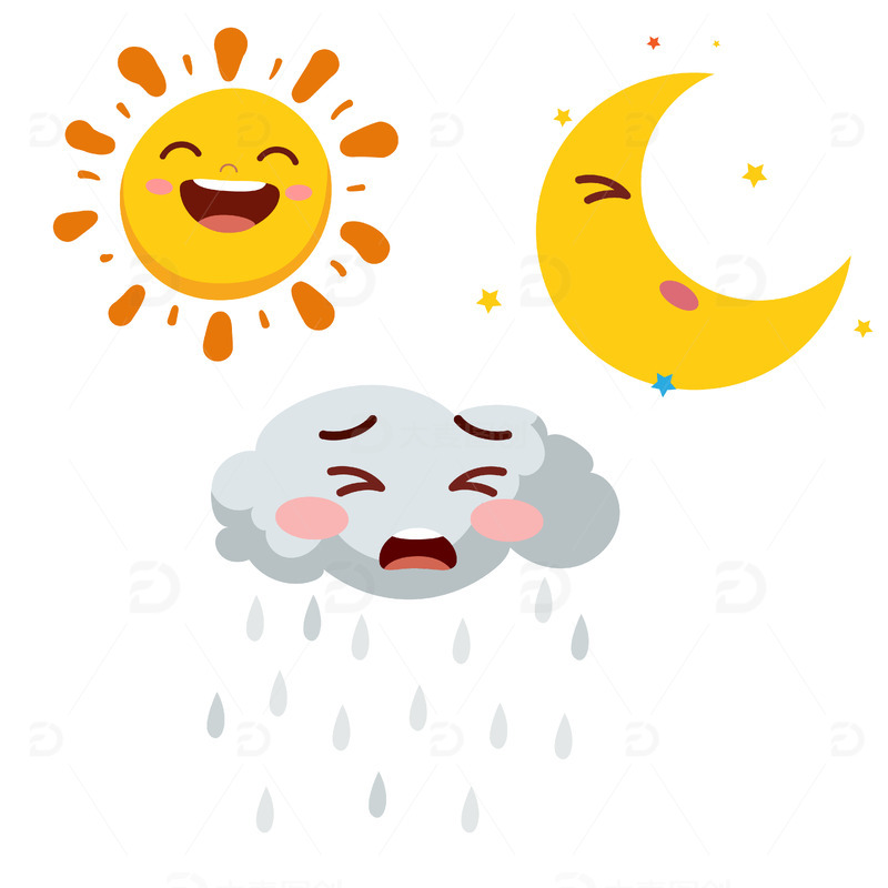 可爱卡通月亮太阳云朵表情矢量元素