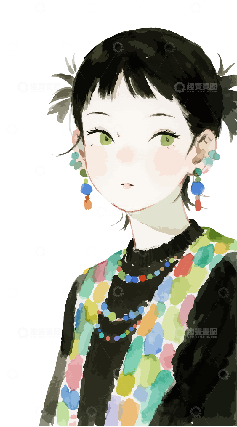 年轻女孩水彩插画