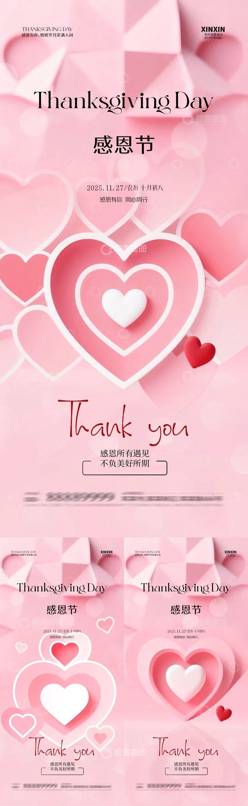 / 粉色感恩节爱心海报设计素材