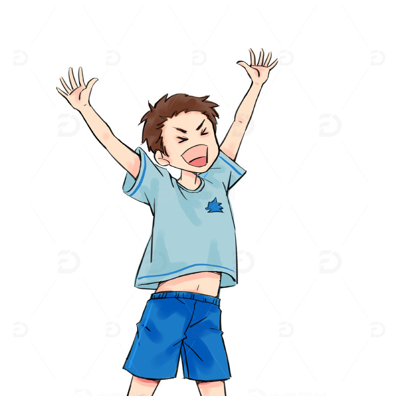 卡通手绘欢呼动作男孩