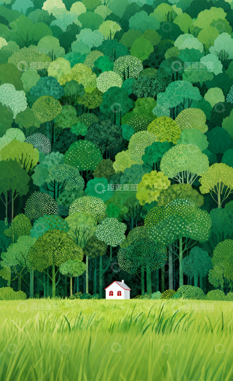 / 森林小屋插画