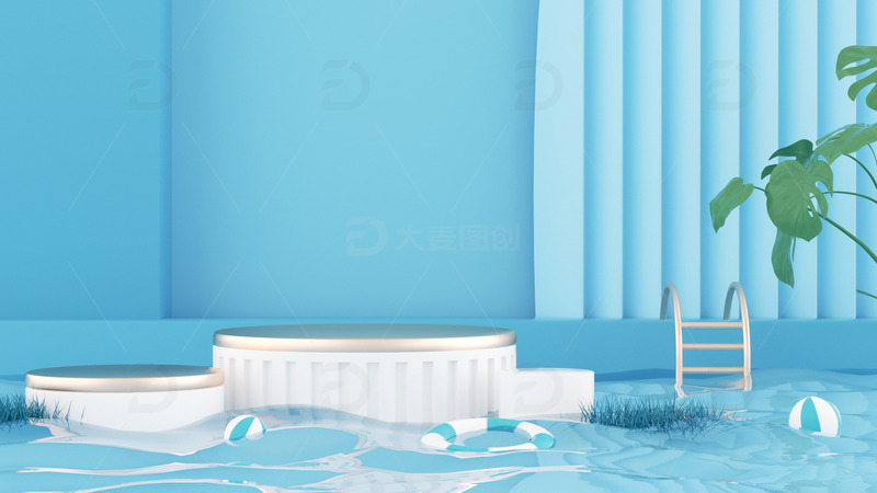 / C4D泳池立体展台海报背景