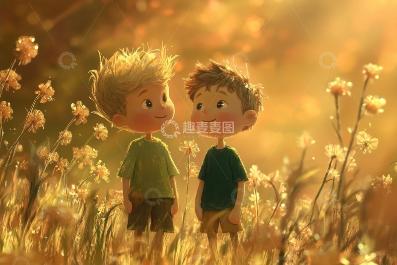 / 草丛中的两个可爱小男孩