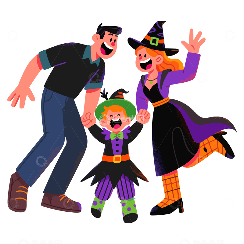 / 卡通万圣节家庭装扮插画素材