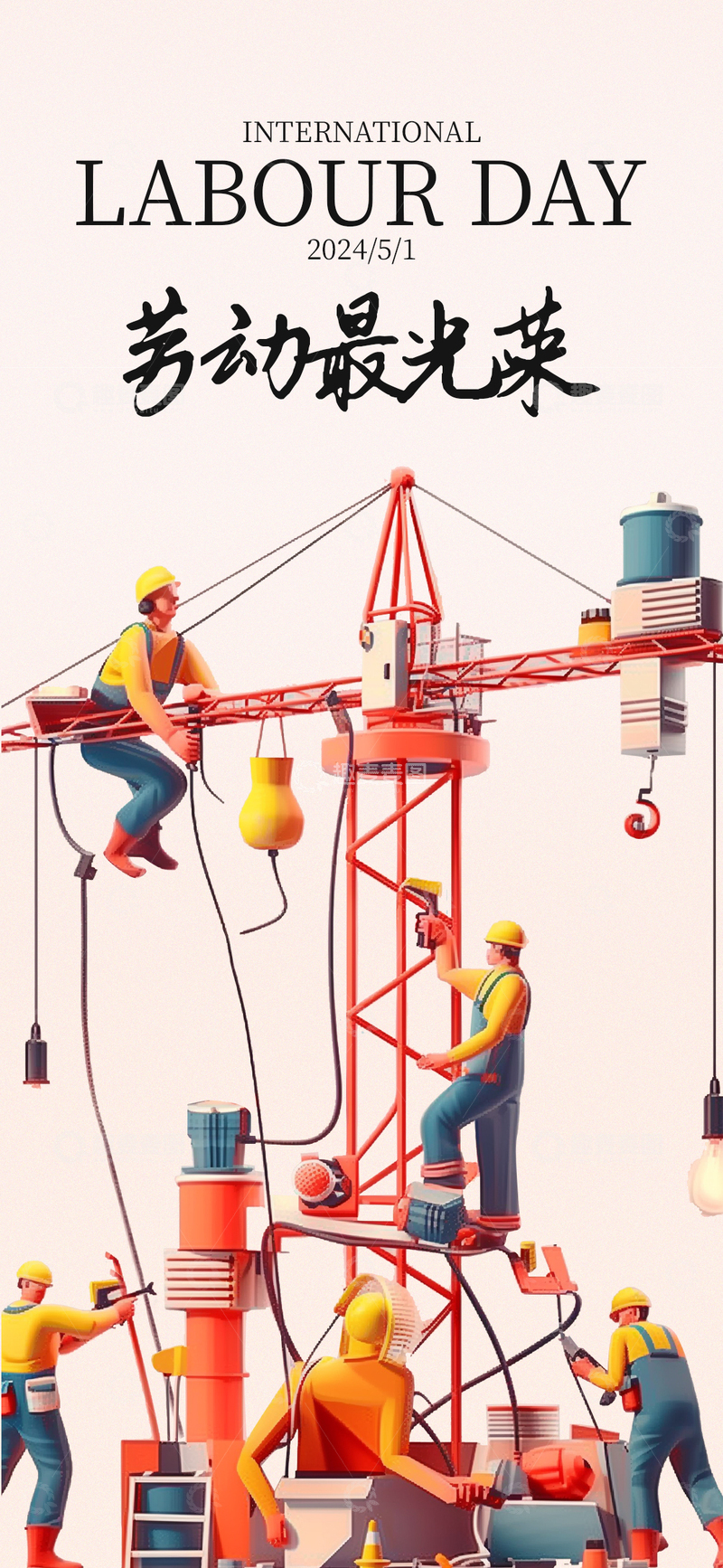 卡通劳动节建设场景海报设计