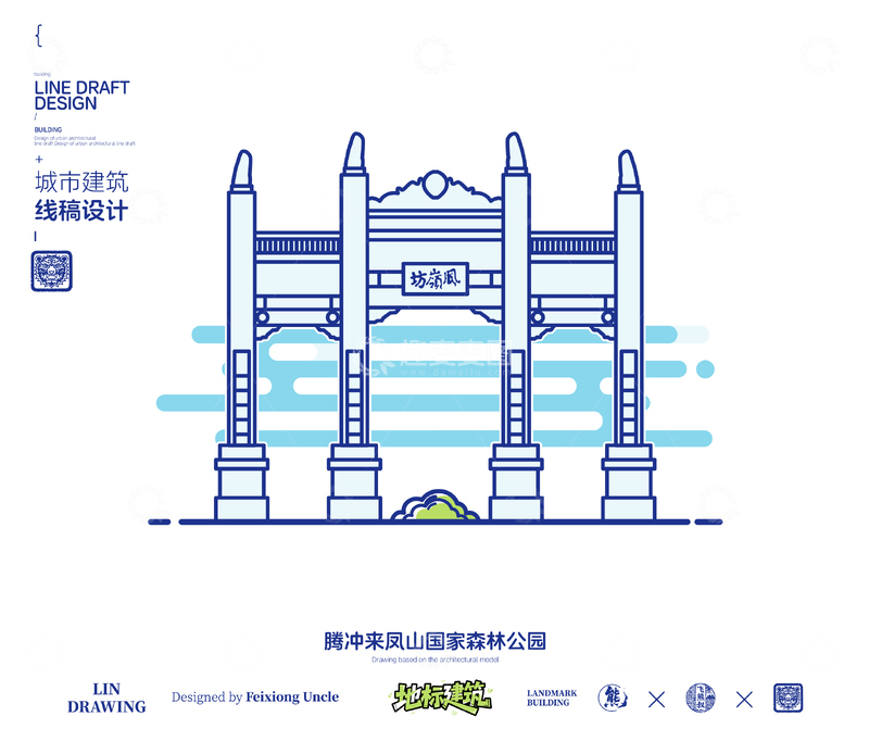 / 腾冲来凤山森林公园城市地标矢量建筑线描