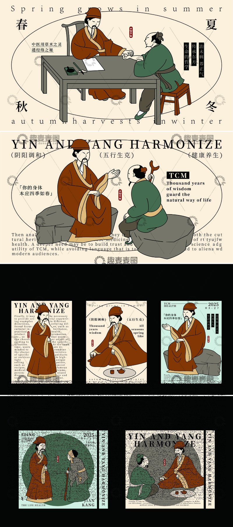 / 中医问诊手绘人物插画海报设计
