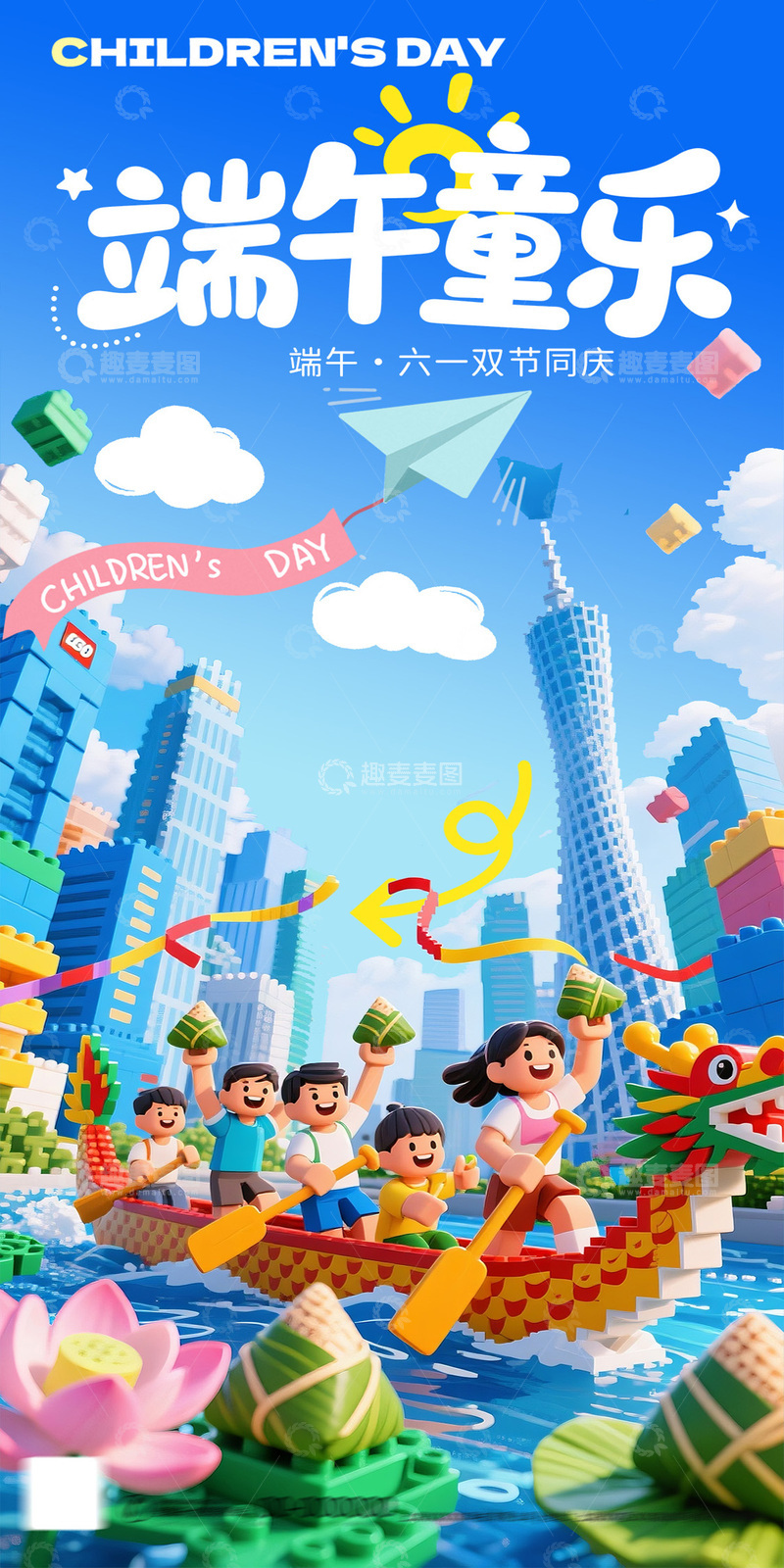/ 卡通端午节龙舟乐高海报设计素材