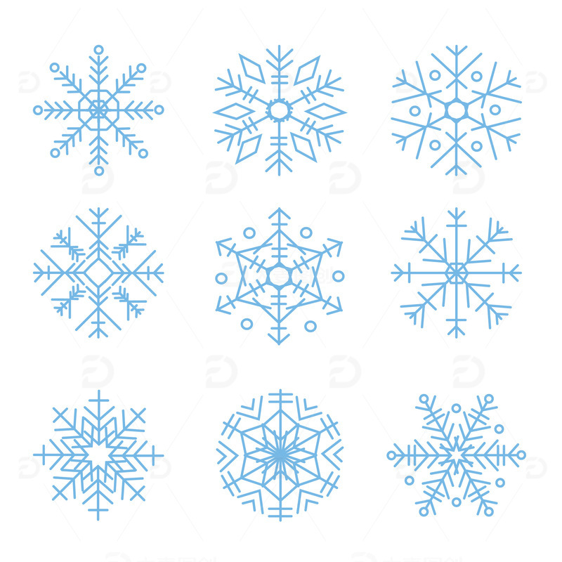 / 卡通小雪雪花冰晶结晶线条装饰图标