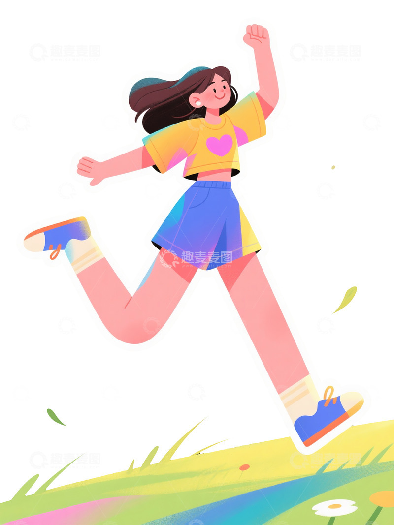 / 奔跑欢呼黄衣蓝裤女性插画