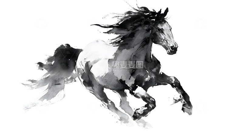 水墨双马奔腾释放艺术自由的张力