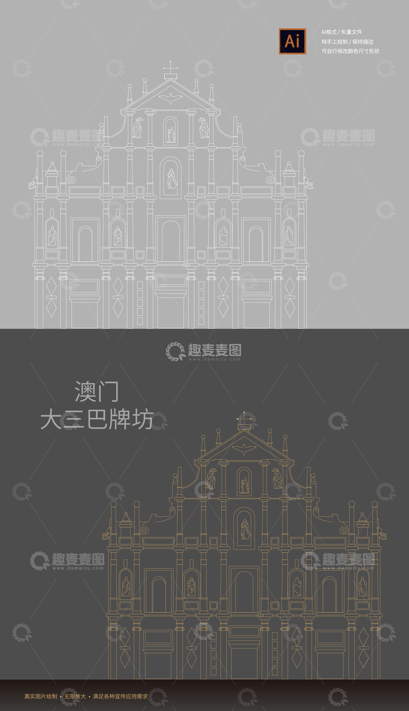 / 线描风格澳门大三巴牌坊海报设计
