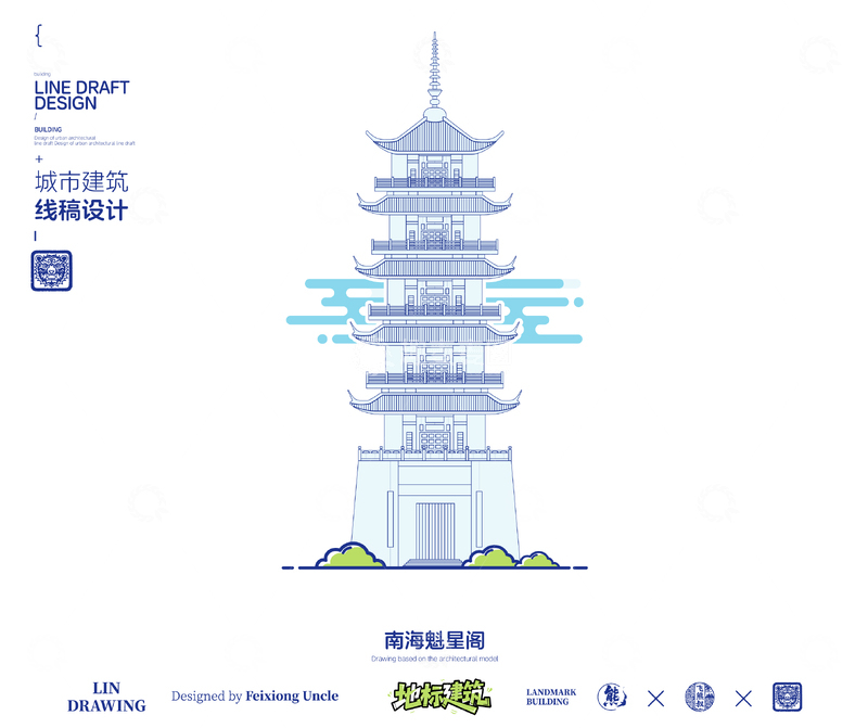 / 广东佛山南海魁星阁城市地标矢量建筑线描