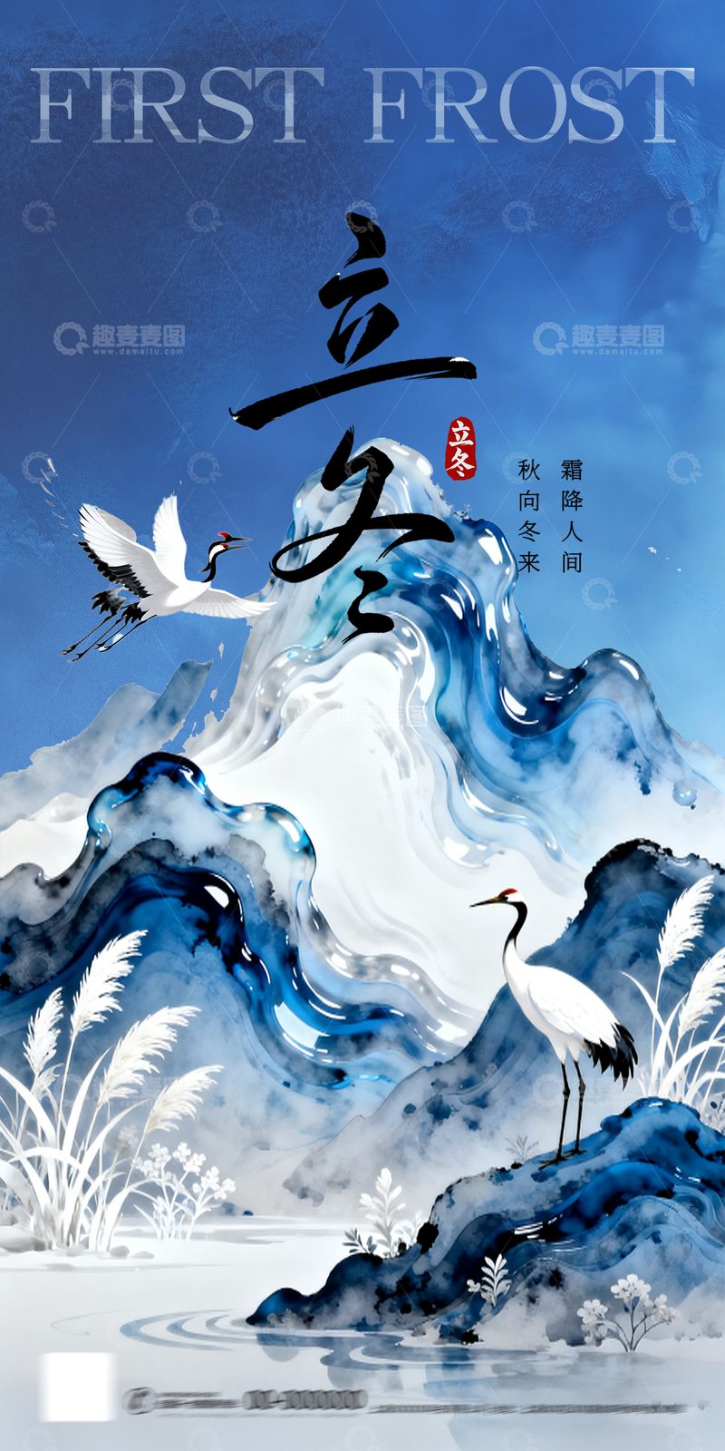 / 蓝色新中式地产立冬白鹤节气海报