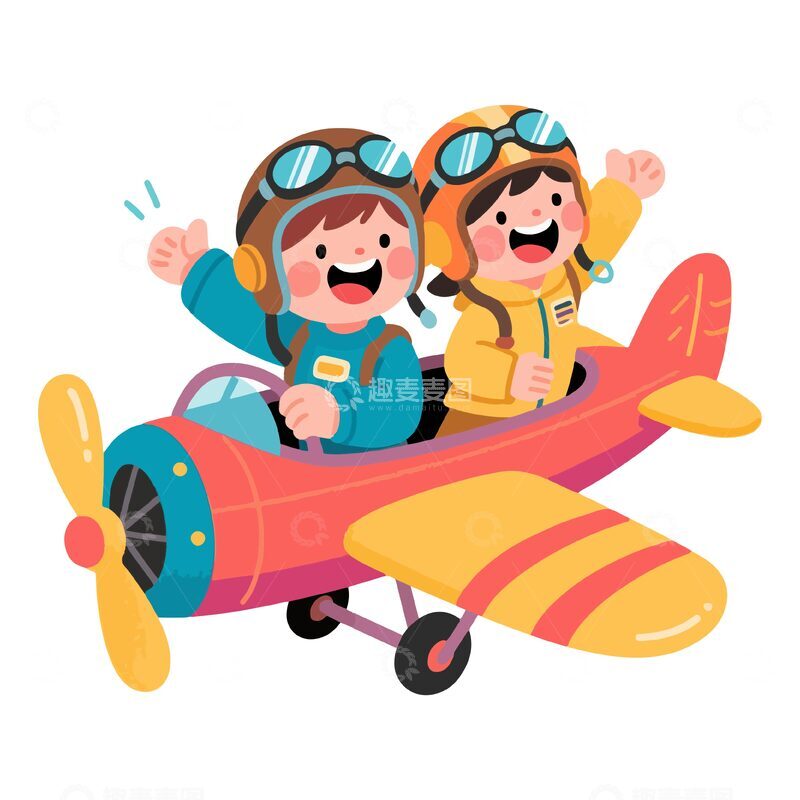 开飞机的小孩卡通人物插画4