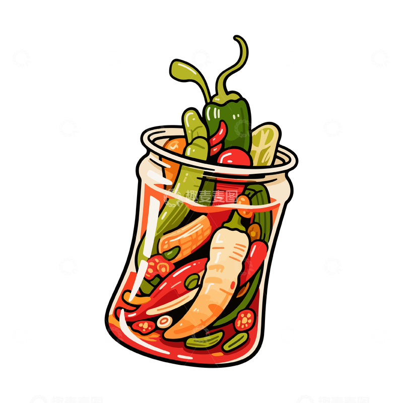 / 卡通泡菜罐插画设计素材