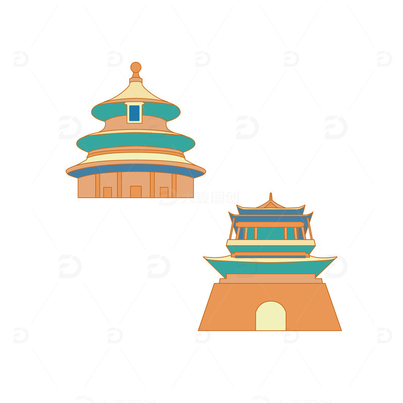 / 线性描边风北京标志建筑元素