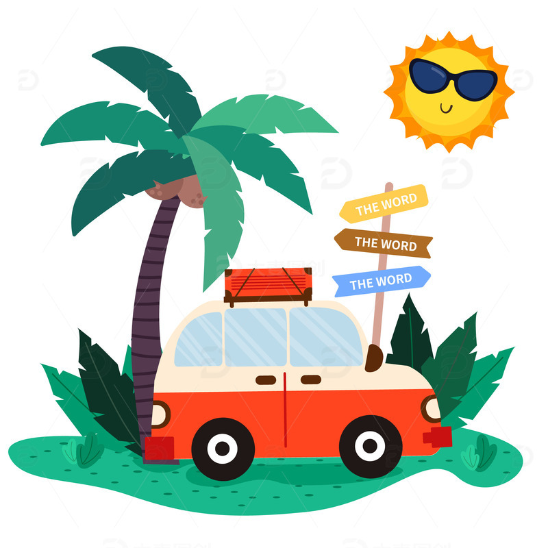 / 卡通可爱晴天自驾游户外旅游装饰插画图标