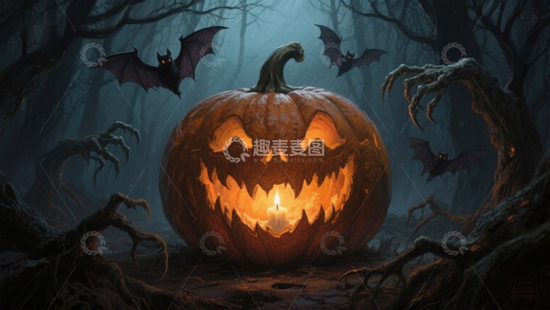/ 万圣节南瓜灯与飞蝠的神秘森林