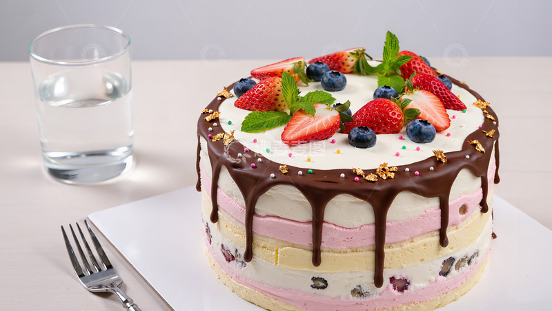 美味巧克力草莓冰淇淋蛋糕摄影图