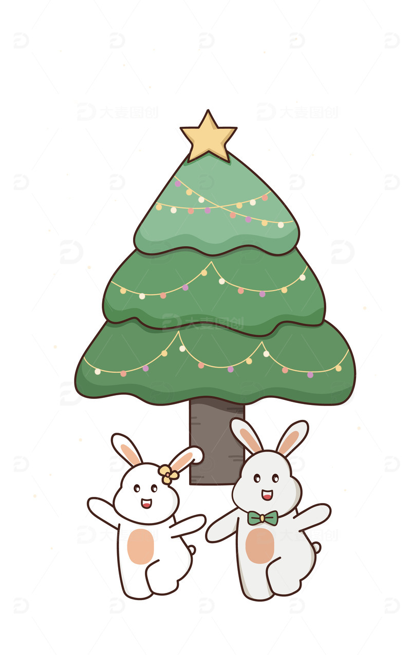 / 绿色圣诞节夜晚兔子跳舞月亮星星圣诞树雪花