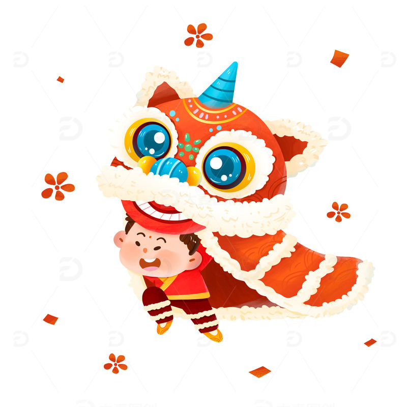 / 手绘卡通新年开门红舞狮子免抠元素