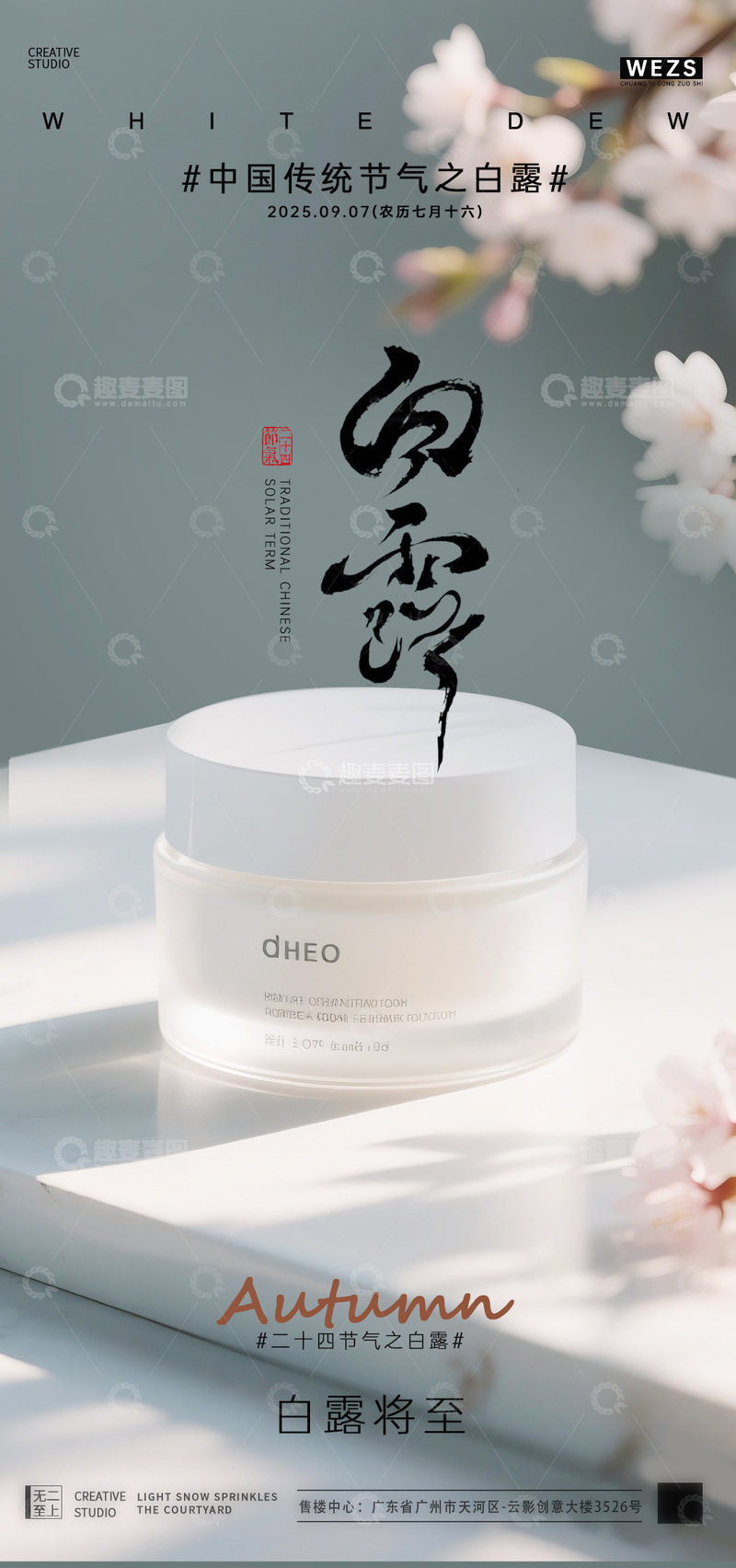 秋意浓白露护肤品广告设计