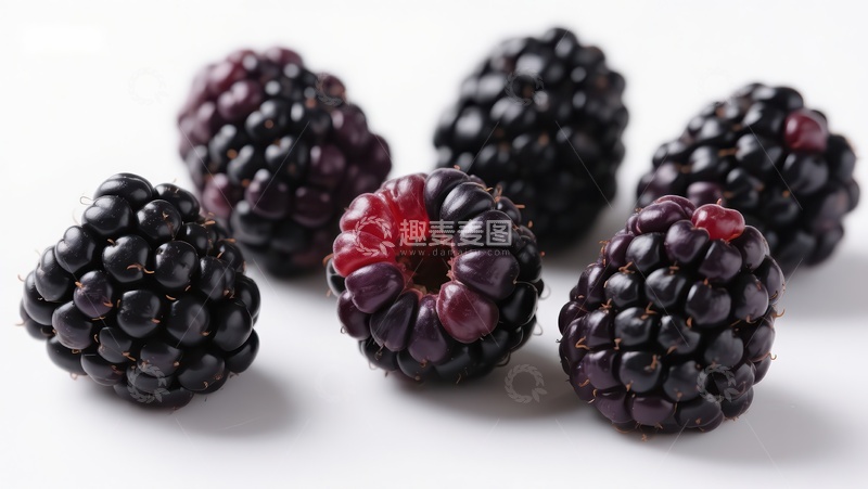 新鲜黑莓特写,一颗半熟