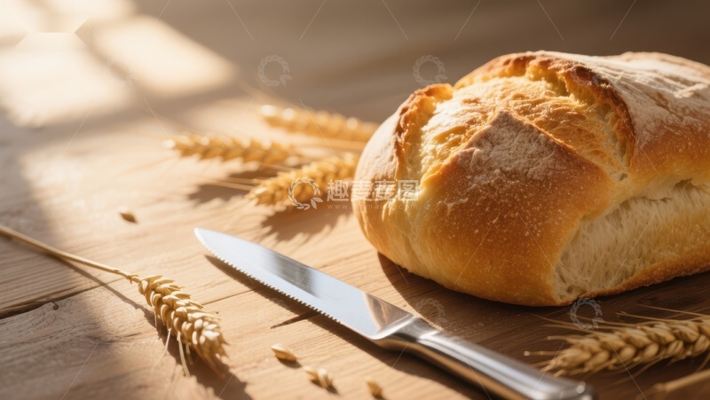 / 新鲜面包与麦穗的静物图