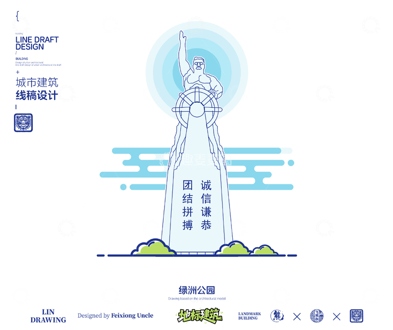 / 福建泉州绿洲公园城市地标矢量建筑线描海报
