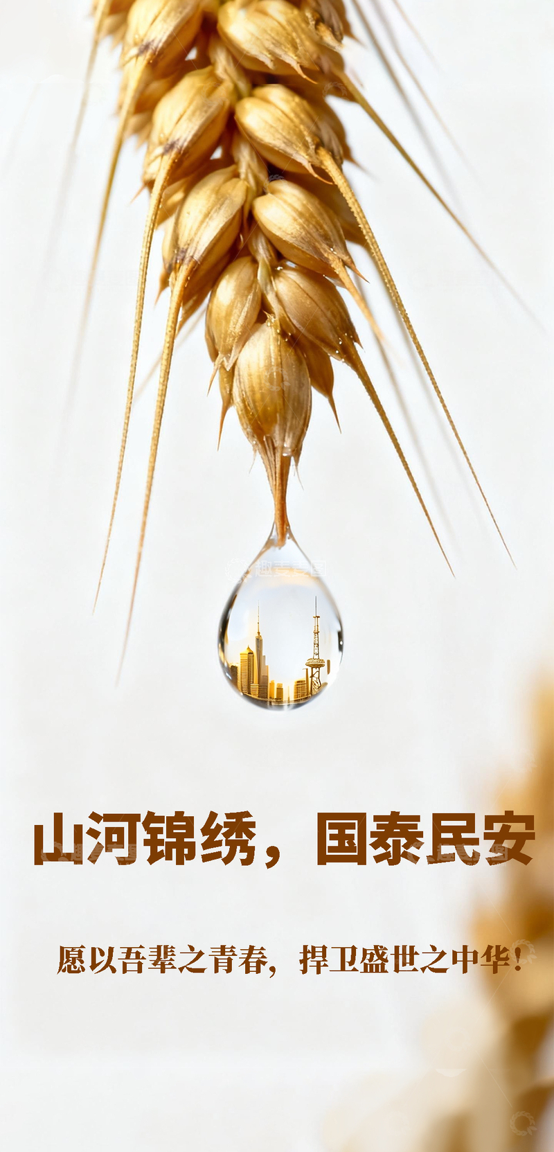/ 金色麦穗建筑简约极简唯美国庆海报