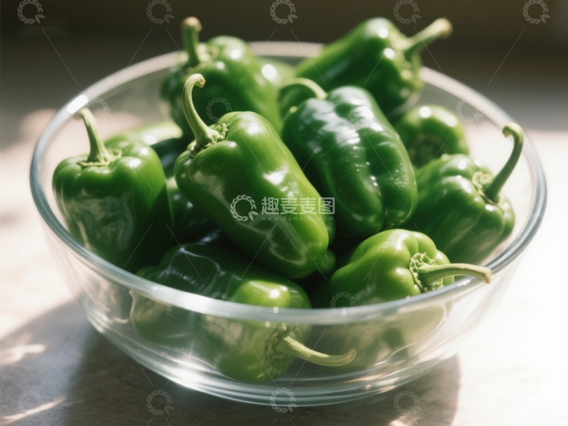 透明碗中的新鲜青椒