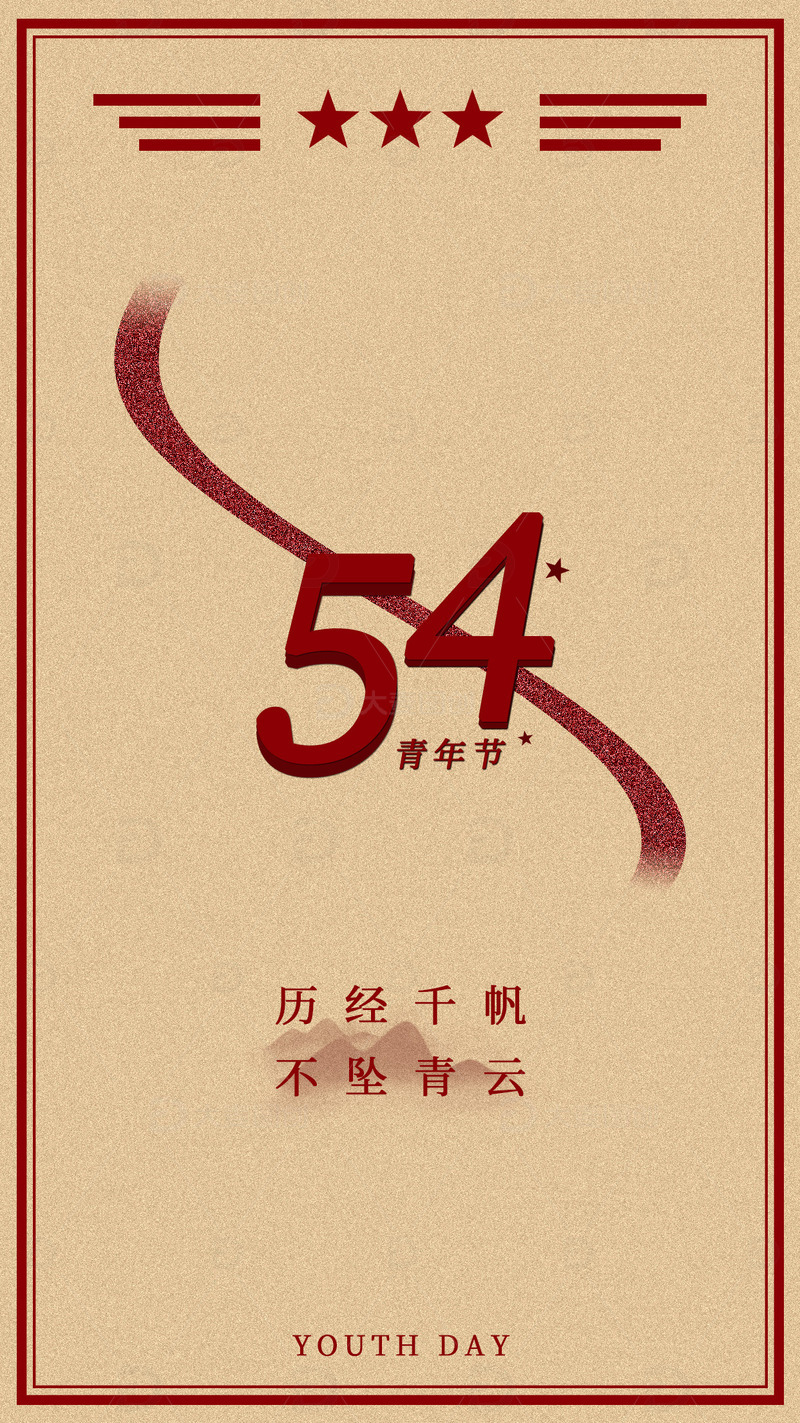/ 五四青年节奋斗红金色励志简约大气复古海报